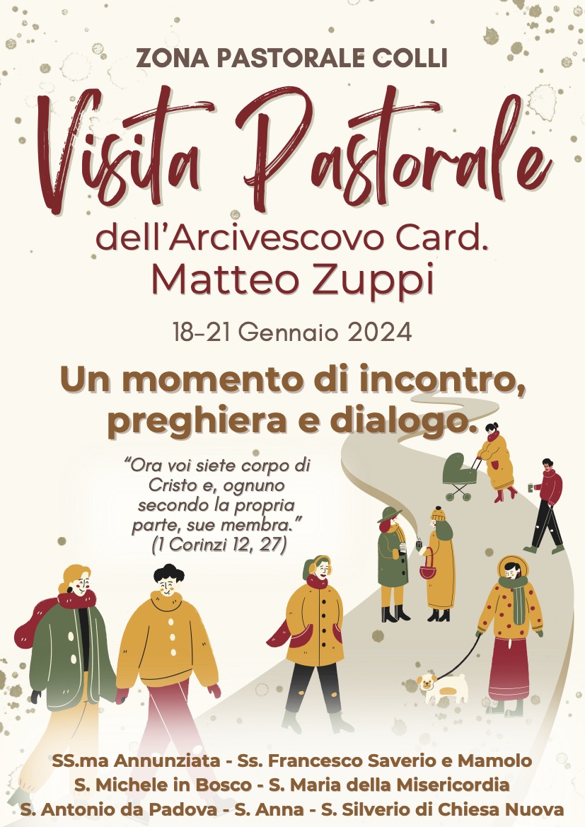 Il nostro Vescovo Matteo Zuppi viene a trovarci!È un'occasione davvero speciale che riguarderà noi e tutta la nostra "Zona Pastorale" dal 18 al 21 Gennaio. Viene proprio per noi, per incontrarci, ascoltarci, condividere, offrirci la sua presenza e la sua parola. Ci saranno alcuni appuntamenti aperti a tutti, e che non potremo perderci: Giovedì 18 …